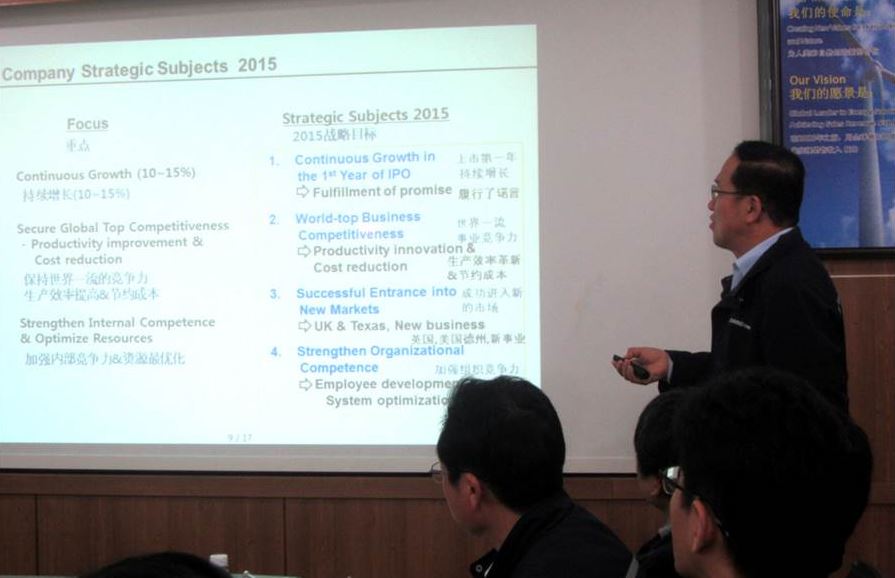 期間,金社長(zhǎng)向中國(guó)工廠管理層傳達(dá)了總部的工作指示,并就2015年集團(tuán)組織變動(dòng)和戰(zhàn)略調(diào)整問(wèn)題召開(kāi)了管理者會(huì)議。