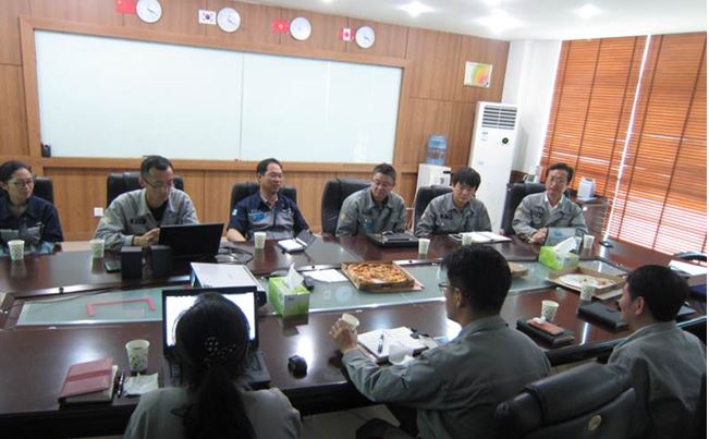 2015年5月21日下午,Gamesa Puerto Galera 項目啟動會議在公司主會議室順利召開。會議期間,項目部向全體與會人員詳細講解了該項目的基本情況和實施計劃。該項目的制造時間將有部分與日立和西門子項目重疊,總經(jīng)理要求大家要做好相關的準備工作。參加會議的有公司項目組、中高管理層以及相關技術人員。圖為:項目經(jīng)理 陳磊鑫(右五)在講解項目實施計劃圖為:劉總(左四)在會上講話慶祝項目開啟