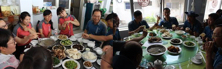 圖為: 總經(jīng)理 劉容銑(前二)在“一”字 行“軍”隊伍中