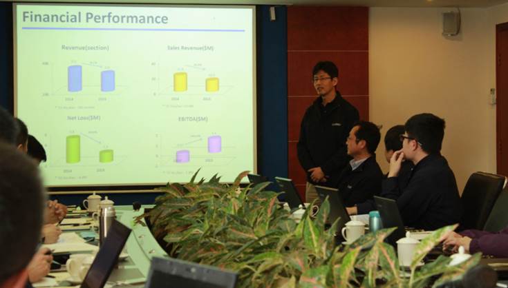 2016年1月9日至10日,2015重山風(fēng)力年終會議在福建廈門召開。會議對2015年公司各個(gè)方面的工作進(jìn)行了總結(jié),同時(shí)制定了2016年的戰(zhàn)略方針和成本節(jié)約計(jì)劃。圖為:全體與會人員合影圖為:管理本部 金貞洙 本部長(右四)匯報(bào)2015年度公司財(cái)務(wù)收支情況圖為:劉容銑 總經(jīng)理 發(fā)表講話圖為:現(xiàn)場討論環(huán)節(jié)