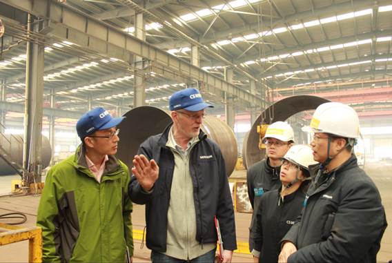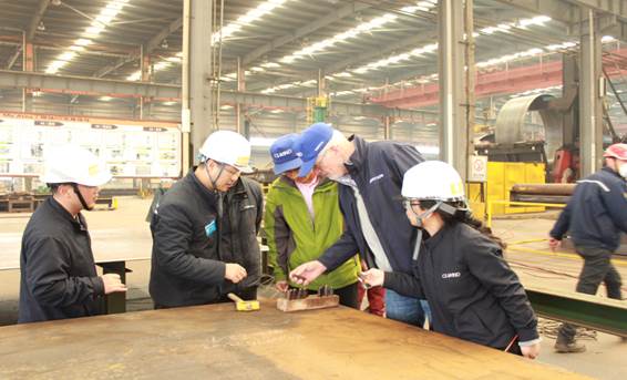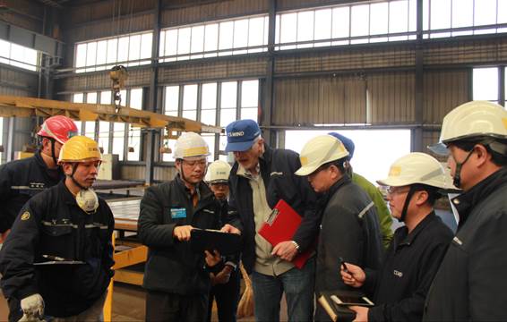 2016年3月23日至24日,來自Senvion的 Uwe Meesenburg和Xiaohan Wang兩人審核小組對我公司進行了為期兩天的管理體系審核。此次審核覆蓋范圍涉及到 公司認證資質(zhì)、質(zhì)量計劃及體系運作、設(shè)備及生產(chǎn)儲運能力等多個方面。審核于3月24日順利結(jié)束。審核小組對我公司在審核涉及到的各個方面表現(xiàn)都非常滿意,其中印象最為深刻的就是 公司所有員工展現(xiàn)出的精神面貌與干勁。 審核組長Uwe Meesenburg坦言,以我目前的組織和在生產(chǎn)風力塔架方面的豐富經(jīng)驗,他對我公司能夠成功完成Senvion交付的訂單非常有信心。 圖為:劉容銑總經(jīng)理(左二)向Uwe Meesenburg(右三)介紹鋼印號移植流程圖為:Uwe Meesenburg(左五)在黑塔車間查看產(chǎn)品檢驗記錄圖為:Uwe Meesenburg(左二)與劉容銑總經(jīng)理(右一)就焊接工藝交換意見